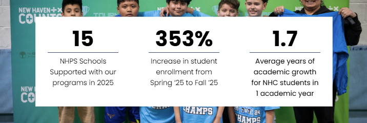 New Haven Counts is a 501(c)(3) nonprofit organization dedicated to improving math achievement, expanding access to high-quality afterschool programming, and creating pathways to success for young people in New Haven and surrounding communities. New Haven Counts was founded in response to persistent gaps in math achievement and access to enrichment opportunities for young people. What began as a small, community-based effort to provide free math tutoring quickly grew into a comprehensive model that connects academic support with mentorship, sports-based learning, and youth employment.